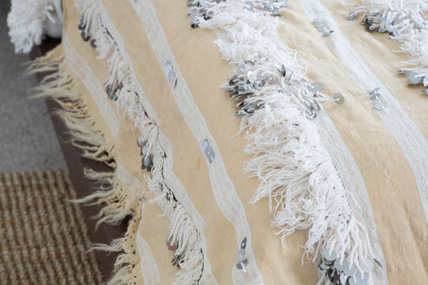 The wedding blanket is trending today in Modern home design. And our handira is a one of a kind piece that embellishes any room of yours, and adds to it both warmth, and shine.