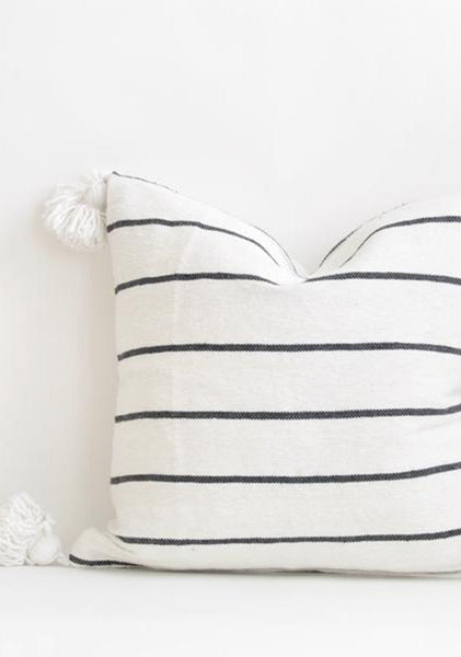 20"x20" Cotton Pom Pom Stripped Pillow Cover wih Tassels